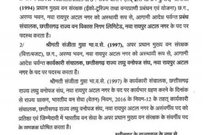 Chhattisgarh IFS Transfers :छत्तीसगढ़ में बड़ा प्रशासनिक फेरबदल: 15 IFS अफसरों का तबादला