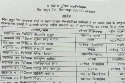 बिलासपुर। बिलासपुर रेंज के आईजी डॉ. संजीव शुक्ला ने रेंज स्तर पर…