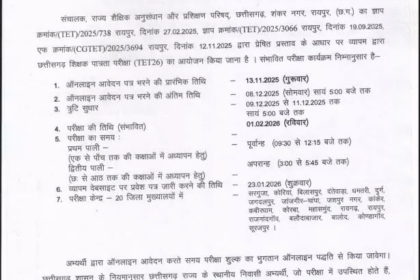CG TET 2025 अधिसूचना जारी : 1 फरवरी 2026 को होगी शिक्षक पात्रता परीक्षा, जानें पात्रता, परीक्षा पैटर्न और महत्वपूर्ण तिथियां
