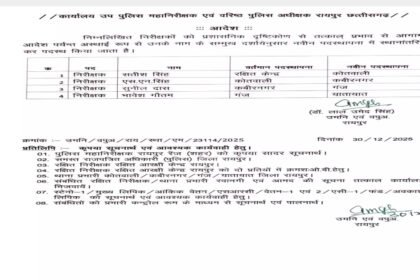 रायपुर |' साल के अंतिम दिन रायपुर जिला पुलिस में बड़ा प्रशासनिक…