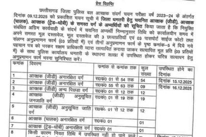 Aarakshak Chayan : धमतरी जिले के चयनित आरक्षकों के लिए दस्तावेज़ सत्यापन तिथि घोषित