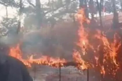 श्रद्धालुओं की लापरवाही से मंदिर परिसर में लगी आग, मची अफरा-तफरी