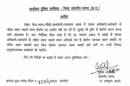 Helmet mandatory : एसपी ने पुलिसकर्मियों के लिए हेलमेट पहनना किया अनिवार्य, 10 नवंबर से आम जनता पर भी होगी सख्ती
