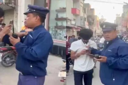 Middle of The Road Slapping Incident : ट्रैफिक जवान और युवक के बीच हाथापाई, वीडियो वायरल