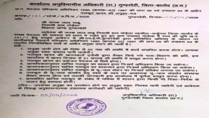 बालोद। छत्तीसगढ़ के बालोद जिले के गुंडरदेही ब्लॉक में प्रशासनिक शुचिता को चुनौती देने वाला एक सनसनीखेज मामला सामने आया है। यहाँ बोर खनन की अनुमति के लिए फर्जी दस्तावेज तैयार कर एसडीएम के जाली हस्ताक्षर और कार्यालयीन सील का दुरुपयोग किया गया। यह मामला तब उजागर हुआ जब खुद एसडीएम के सामने उनके ही फर्जी हस्ताक्षर वाला पत्र पहुंचा, जिसे देखकर प्रशासनिक महकमे में हड़कंप मच गया। मामले की गंभीरता को देखते हुए तत्काल पुलिस में शिकायत दर्ज कराई गई है और अज्ञात जालसाजों के खिलाफ एफआईआर दर्ज कर जांच शुरू कर दी गई है।