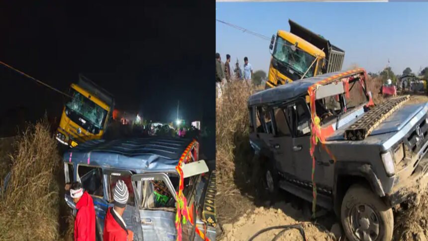 परिवार की क्रूजर गाड़ी सड़क किनारे खड़ी थी, जिसमें कुछ सदस्य बाहर थे और अन्य गाड़ी में बैठे थे। इसी दौरान पीछे से तेज रफ्तार हाईवा ने क्रूजर को टक्कर मार दी। टक्कर इतनी जबरदस्त थी कि क्रूजर सड़क से उतरकर खेत में पलट गई।
