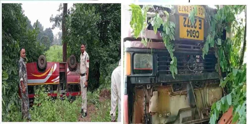 जानकारी के अनुसार, डीआरडी यात्री बस (वाहन क्रमांक CG 04 E 2872) धमतरी से नगरी की ओर जा रही थी। खड़ादाह मोड़ के पास बस अचानक तेज गति और कथित तौर पर ब्रेक फेल होने के कारण अनियंत्रित हो गई और पलट गई।
