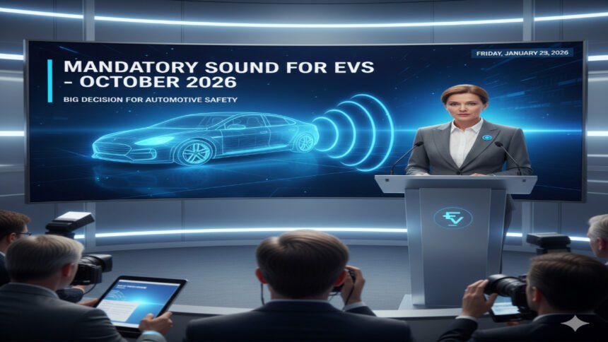 देश में इलेक्ट्रिक वाहनों (EV) की बढ़ती संख्या के बीच पैदल यात्रियों की सुरक्षा को ध्यान में रखते हुए सरकार ने बड़ा कदम उठाया है। अक्टूबर 2026 से सभी इलेक्ट्रिक चार पहिया वाहनों में कम रफ्तार पर कृत्रिम आवाज (Artificial Sound) देना अनिवार्य होगा। इस फैसले का उद्देश्य EV की खामोशी से होने वाले संभावित हादसों को रोकना है।