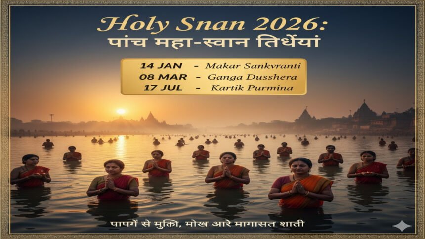 Holy Snan 2026: साल 2026 आध्यात्मिक दृष्टि से बेहद खास माना जा रहा है। हिंदू पंचांग के अनुसार, इस वर्ष ऐसी पांच प्रमुख तिथियां आ रही हैं, जब पवित्र नदियों में स्नान करने से न केवल पापों से मुक्ति मिलती है, बल्कि मोक्ष और मानसिक शांति की प्राप्ति के योग भी बनते हैं। धार्मिक मान्यताओं के अनुसार, इन दिनों किया गया स्नान, दान और जप कई गुना फलदायी होता है।अगर आप भी जीवन में सकारात्मक ऊर्जा, शांति और आध्यात्मिक उन्नति चाहते हैं, तो 2026 की इन महा-स्नान तिथियों को अभी से नोट कर लें।