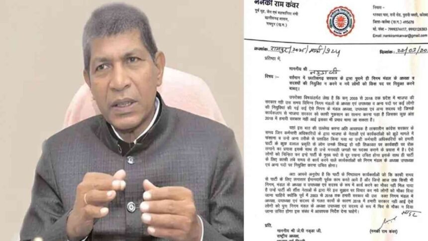 ननकीराम कंवर ने कोरबा कलेक्टर पर हिटलरशाही, भ्रष्टाचार और स्थानीय भाजपा कार्यकर्ताओं की उपेक्षा समेत कई गंभीर आरोप लगाए हैं। उन्होंने मुख्यमंत्री विष्णु देव साय को पत्र लिखकर कलेक्टर के विरुद्ध कार्रवाई के लिए अल्टीमेटम दिया था, जिसके बाद भी कोई एक्शन नहीं लिया गया।