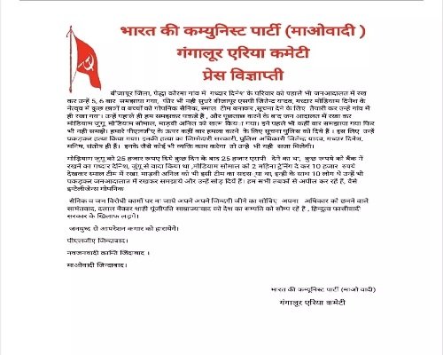 पुलिस अधीक्षक के लिए काम कर रहे थे, ग्रामीणों की हत्या कर नक्सलियों ने जारी किया प्रेस नोट