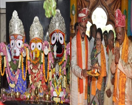 रायपुर। राज्यपाल रमेन डेका और मुख्यमंत्री विष्णुदेव साय आज गायत्री नगर रायपुर स्थित जगन्नाथ मंदिर में आयोजित महाप्रभु श्री जगन्नाथ की रथ यात्रा महोत्सव में शामिल हुए। राज्यपाल डेका और मुख्यमंत्री विष्णुदेव साय ने भगवान जगन्नाथ की पूजा अर्चना कर ‘छेरा-पहरा‘ की रस्म निभाई। राज्य की प्रथम महिला रानी डेका काकोटी ने जगन्नाथ जी की विधि-विधान से पूजा अर्चना की।