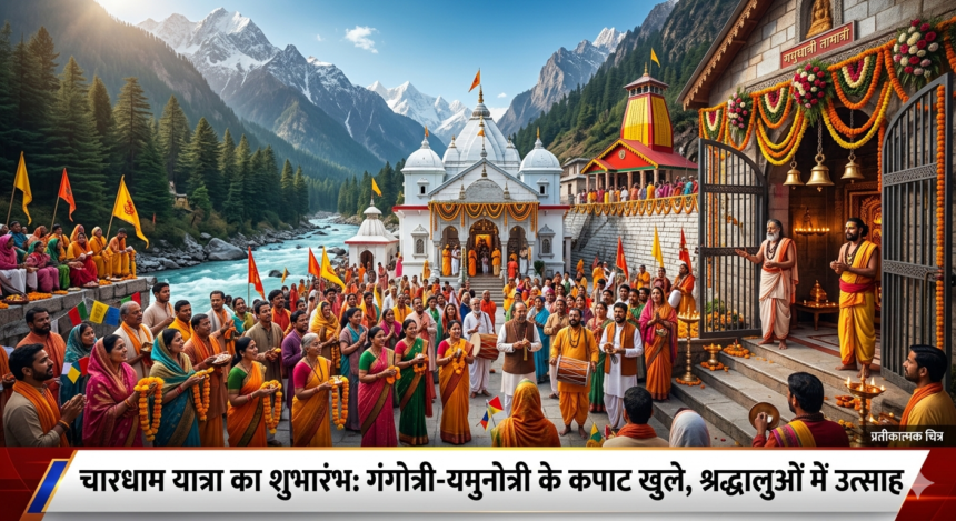देहरादून। उत्तराखंड में आस्था और श्रद्धा का महापर्व चारधाम यात्रा आज से विधिवत शुरू हो गई है। शुभ मुहूर्त में दोपहर 12 बजकर 15 मिनट पर Gangotri Temple और 12 बजकर 35 मिनट पर Yamunotri Temple के कपाट खोल दिए गए। कपाट खुलते ही हजारों श्रद्धालुओं ने जयकारों के साथ दर्शन शुरू किए और पूरा क्षेत्र भक्ति में डूब गया।